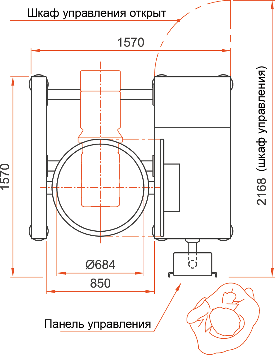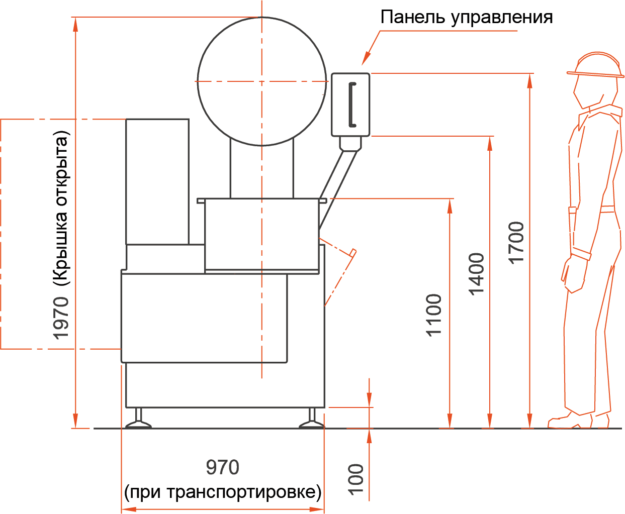 | С закрытой крышкой дежи | 1390 x 1190 x 1700 мм | 1570 x 1570 x 1980 мм |